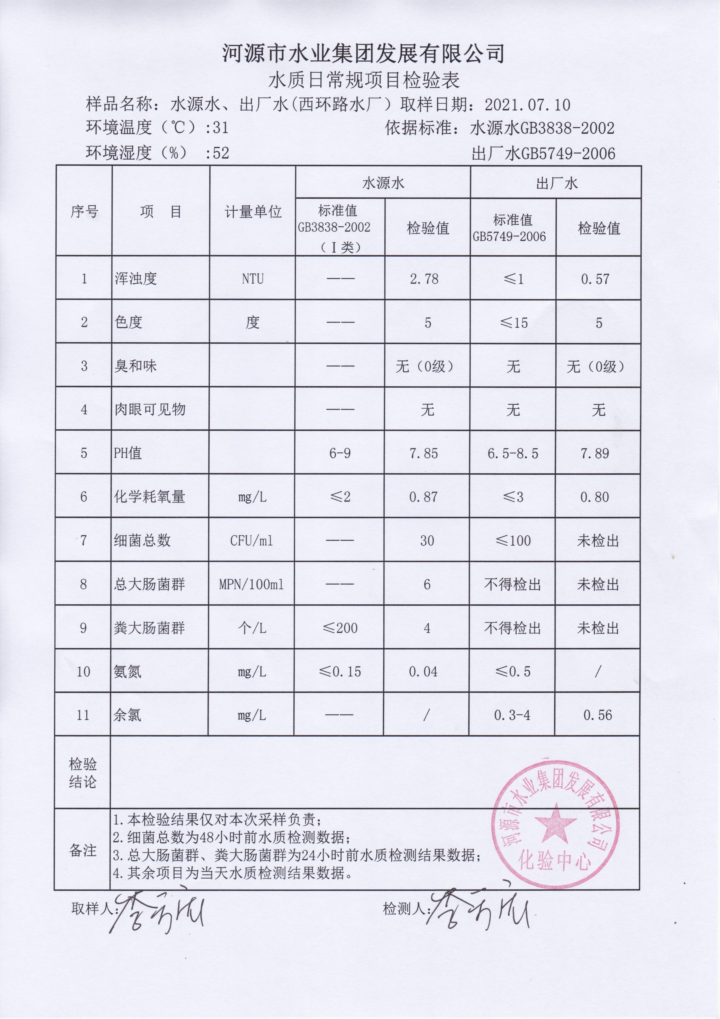 2021年7月10日水質(zhì)檢驗(yàn)報(bào)告
