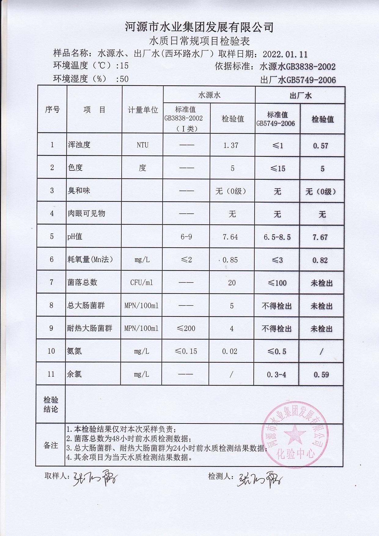 2022年1月11日水質(zhì)檢驗(yàn)報(bào)告