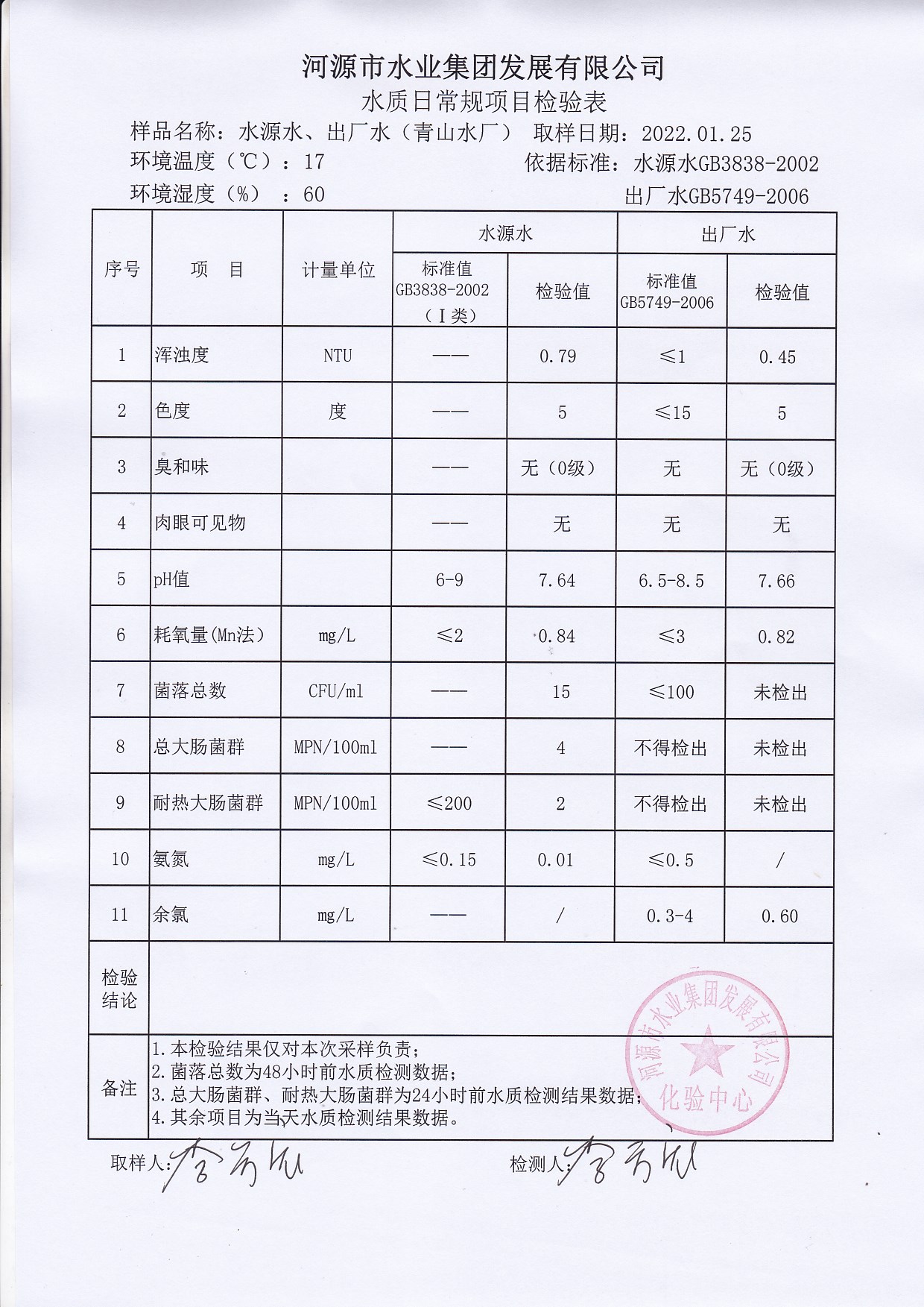 2022年1月25日水質(zhì)檢驗(yàn)報告 ????
