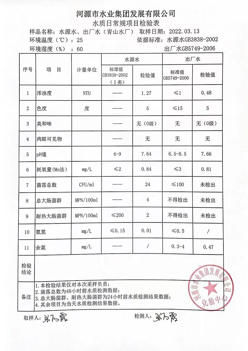 2022年3月13日水質(zhì)檢驗(yàn)報(bào)告 ????