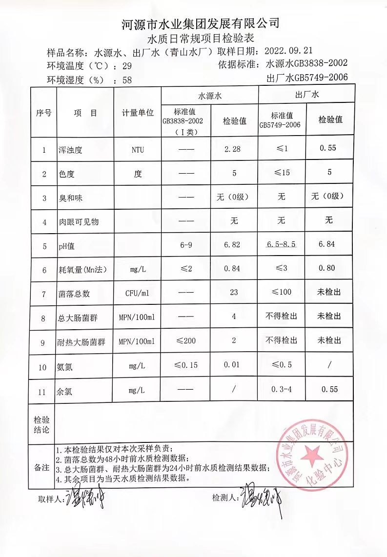 2022年9月21日水質(zhì)檢驗(yàn)報(bào)告 ????