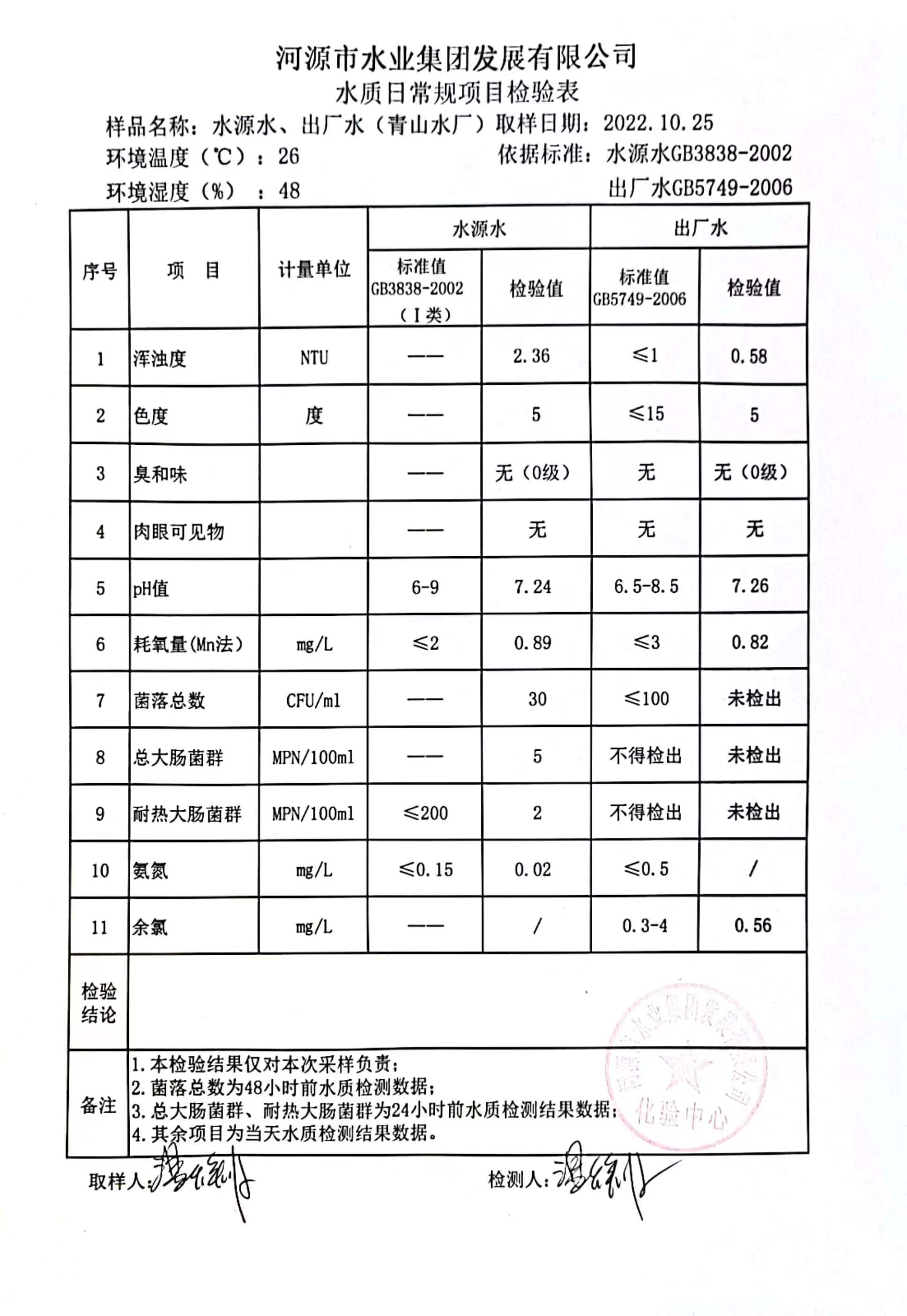 2022年10月25日水質(zhì)檢驗(yàn)報(bào)告 ????
