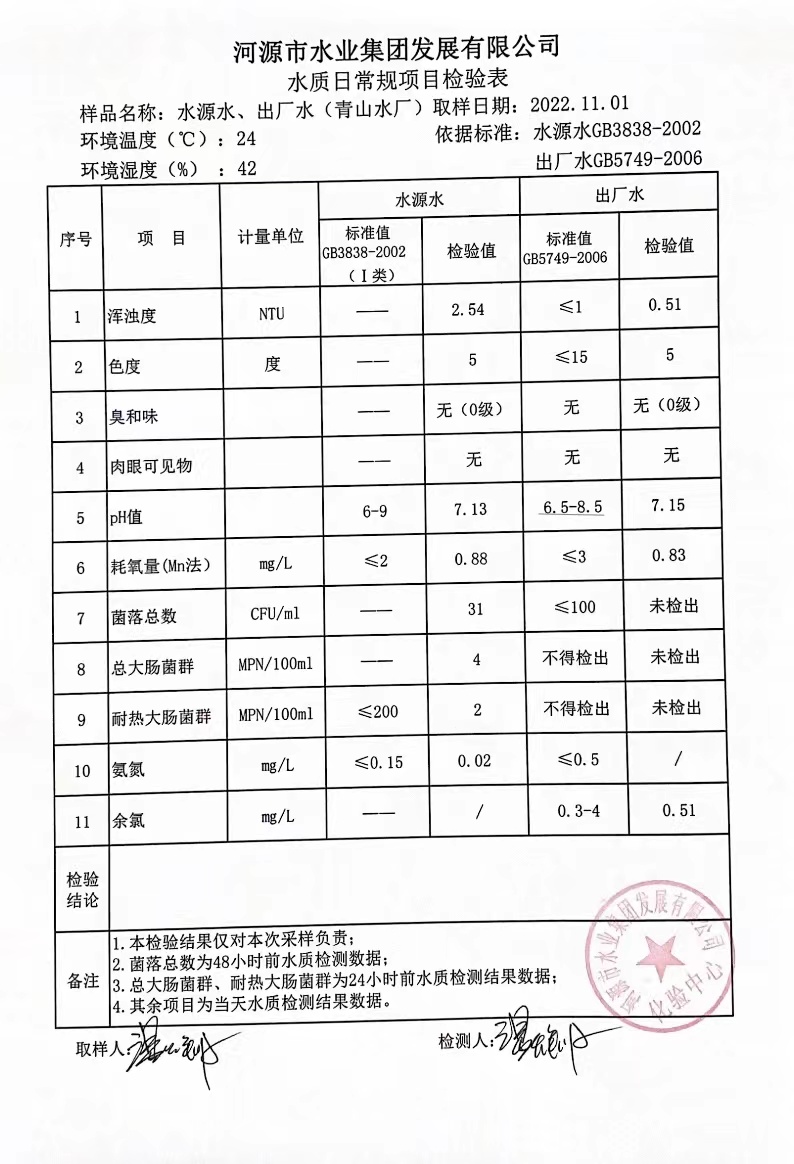 2022年11月1日水質(zhì)檢驗(yàn)報(bào)告