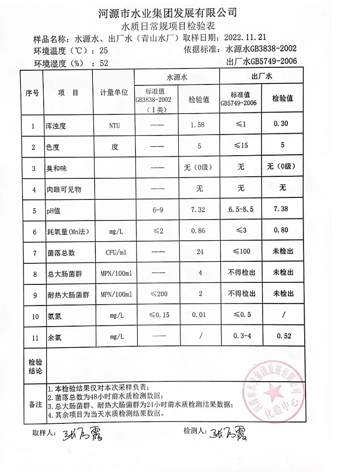 2022年11月21日水質(zhì)檢驗(yàn)報(bào)告