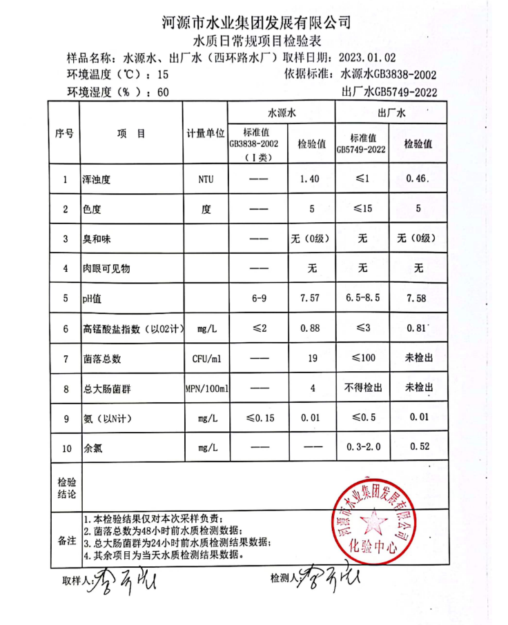 2023年1月2日水質(zhì)檢驗(yàn)報(bào)告