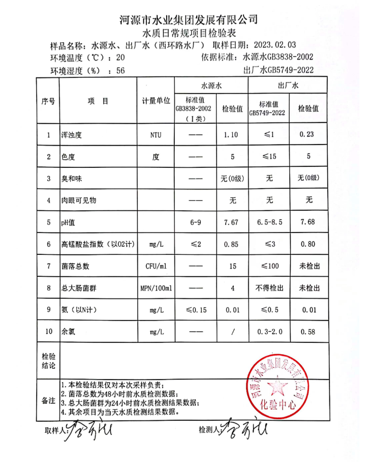 2023年2月3日水質(zhì)檢驗(yàn)報(bào)告