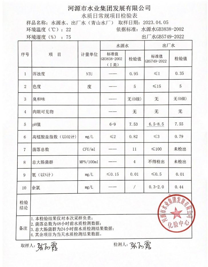 2023年4月5日水質(zhì)檢驗(yàn)報(bào)告